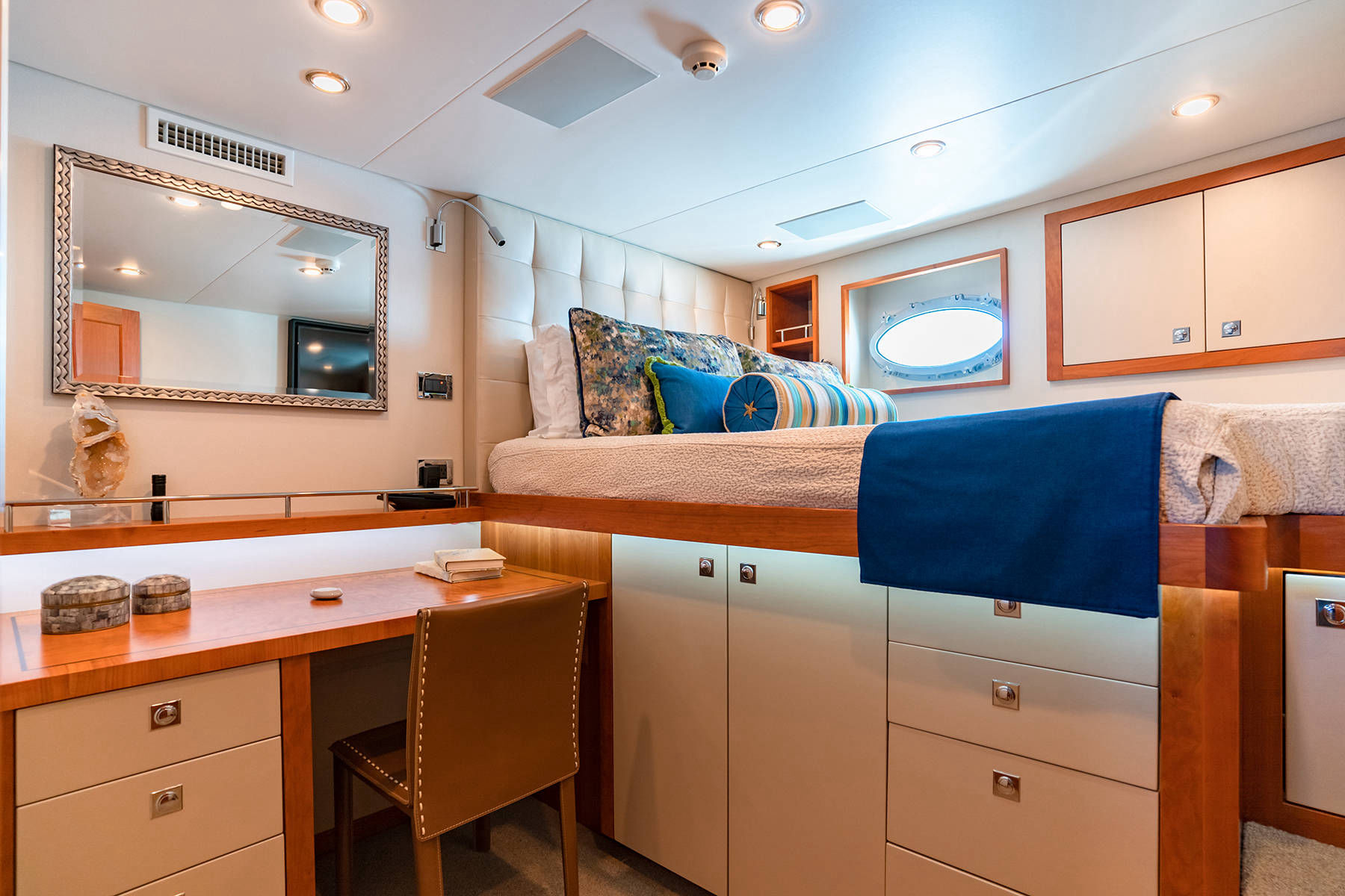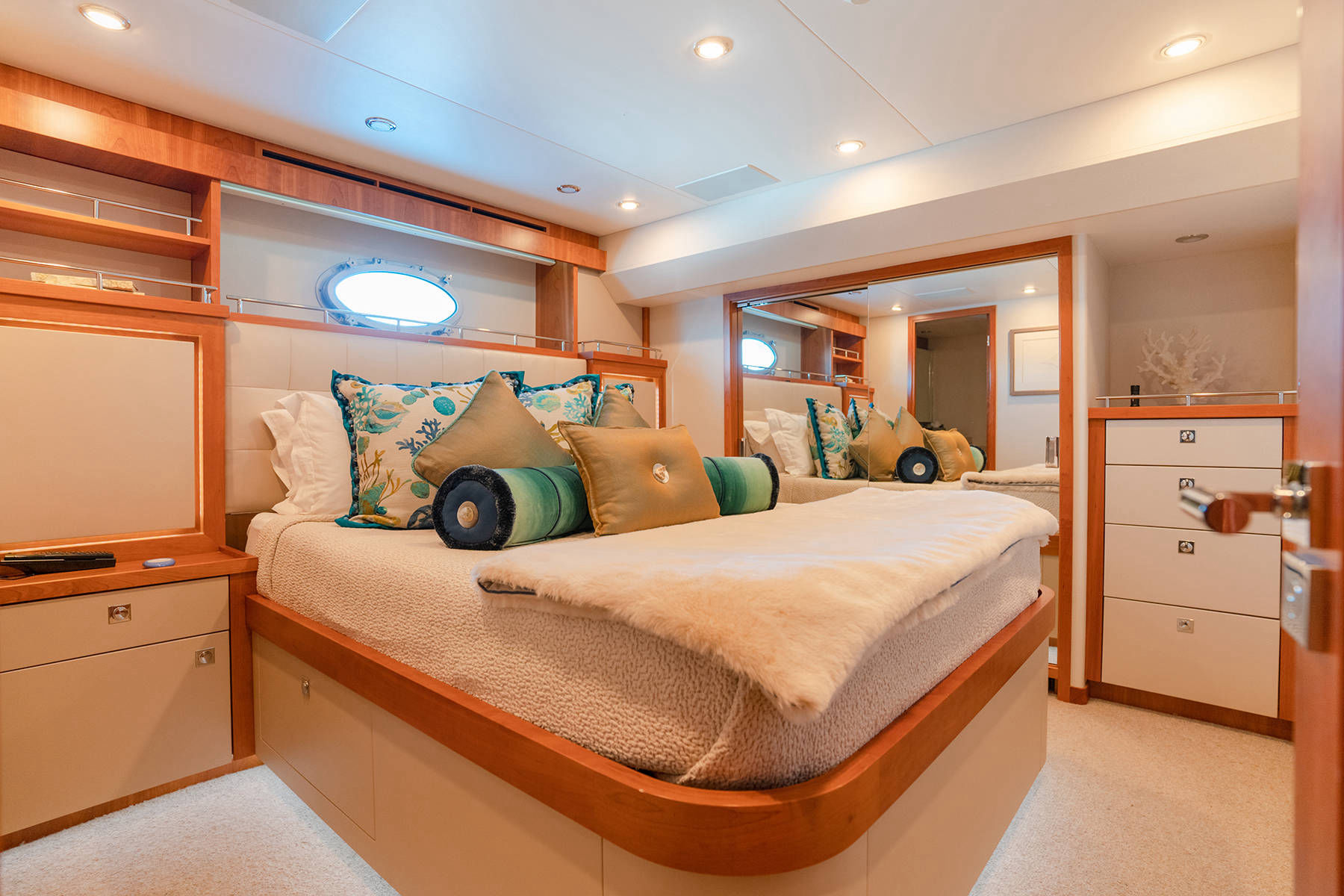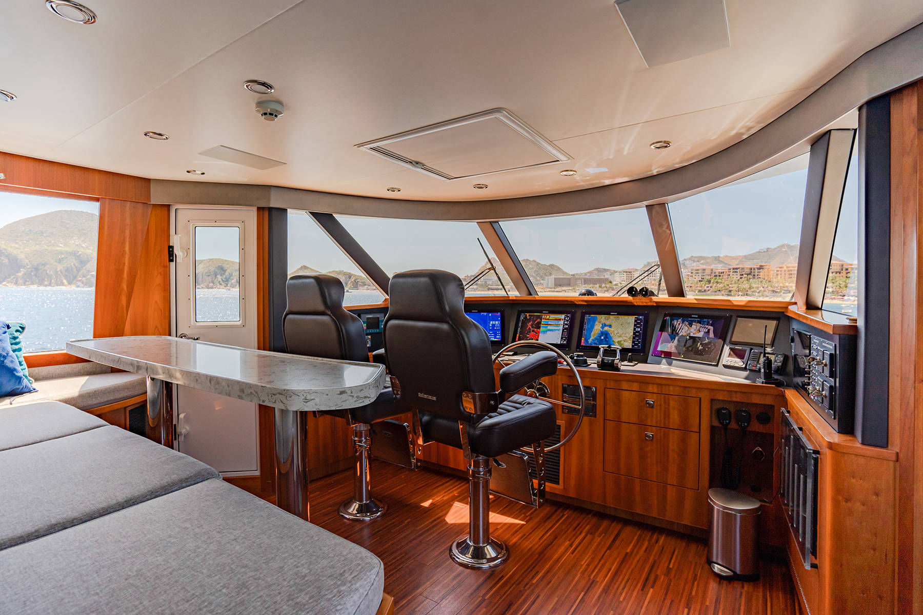 A luxury family yacht, has an intriguing history. It all started in the early 1990s when O. Jay Call would buy and sell his first yacht named Mardiosa. Soon after selling Mardiosa, Mr. Call realized just how much he missed being on the ocean fishing and relaxing with his family. It wasn’t long before Mr. Call commissioned Barattucci Yachts to custom build a new yacht. And thus, plans were made, and construction started, the new yacht would be christened, Fun Runner. Unfortunately, Mr. Call would never see Fun Runner cruising the oceans, his children picked up where he left off, and soon Fun Runner was cruising oceans from Panama to Alaska entertaining family and friends all along the way. In 2014, after many good years, and countless hours of entertaining, it was time to take Fun Runner into dry dock for an overhaul. By this time Fun Runner is owned by Thad and Ronda Call. Thad and Ronda searched endlessly to find the right team to transform Fun Runner into Mardiosa. With the team in place, Fun Runner was stripped down to the skeleton, naval engineers added another 10 feet to the vessel, gyro stabilizer added, state of the art navigation and media system installed, and the interior finished with the finest and most luxurious of materials. No cost was spared in making Mardiosa one of the most comfortable yacht cruising the oceans. After 4 years of dry dock, overhaul and upgrades, in 2018 Fun Runner was christened Mardiosa.